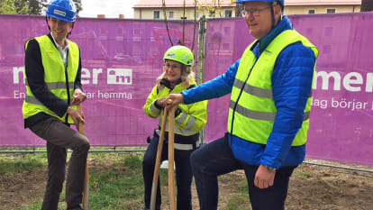 I kvarteret Älgen ska det byggas ytterligare 64 hyresrätter i Västerås. I fredags togs det första spadtaget där kommunalråd Jesper Brandberg (L), Mimers VD Mikael Källqvist och Jenny Gunnar, produktionschef NCC Building Sverige, hjälptes åt att plantera ett äppelträd – för ett fruktsamt samarbete och ett smakfullt boende för de framtida hyresgästerna.