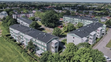 Tillsammans med Falkenbergs Bostads AB (Fabo) har NCC renoverat och moderniserat 179 hyresrätter i området Herting nära Falkenbergs nya fotbollsarena.